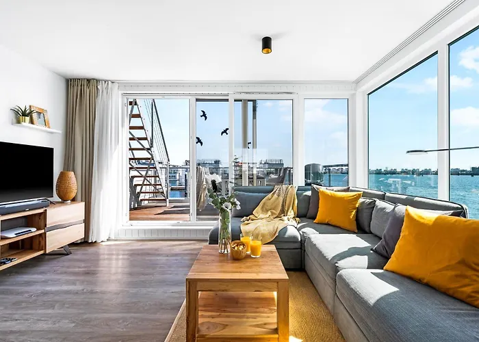 Gasten kunnen genieten van een kust uitzicht op de zee vanaf een terras in de 1-slaapkamer "Aloha" Schwimmendes Wasserhaus, 360 Grad Ostseepanorama, Steg-Endlage, Sauna Olpenitz villa, op afstand van 2 km tot het Weidefeld. Dit vakantiehuis biedt gasten een ontspannende ervaring met een sauna.